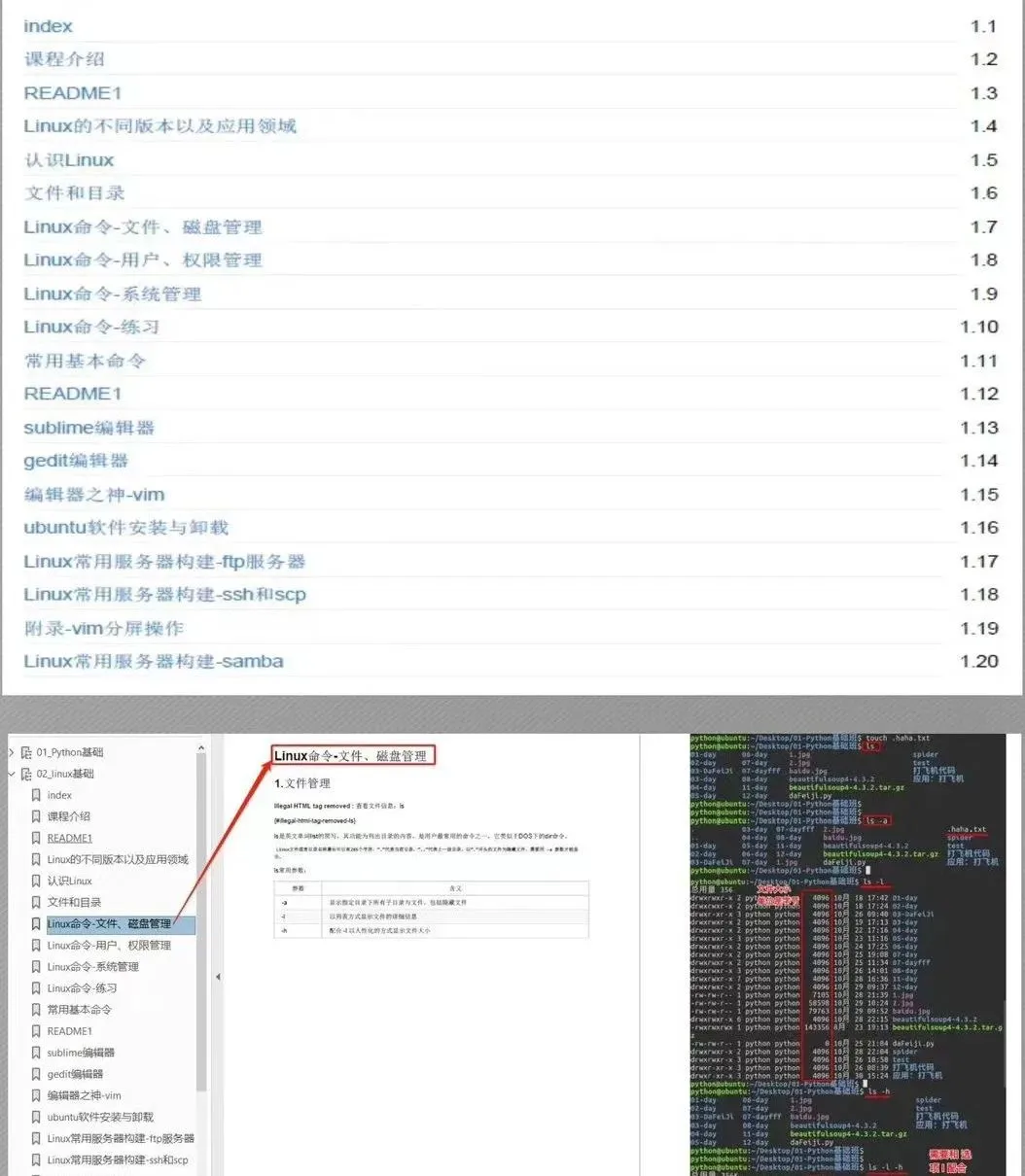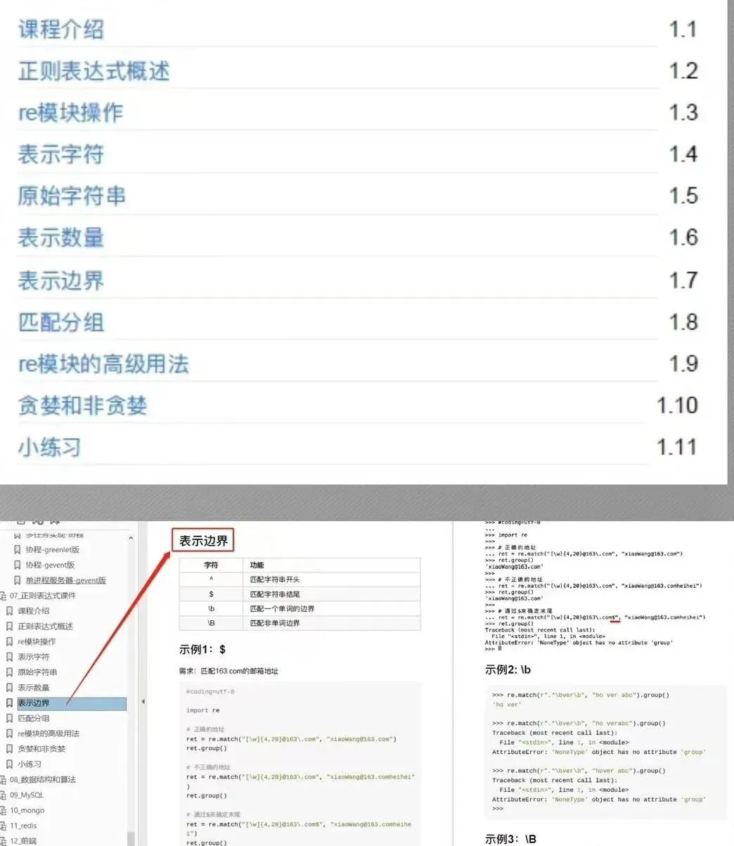 这份文档涵盖基础知识,Linux基础、Python高级知识、linux系统编程、web服务器、网络编程、正则表达式详解、数据结构与算法、MySQL、mango、redis、前端、django、爬虫、tornado、shell等。。。内容非常全面,知识点众多。一本在手,Python不愁!切忌贪多食用,先选择自己的学习方向配合案例学练结合。