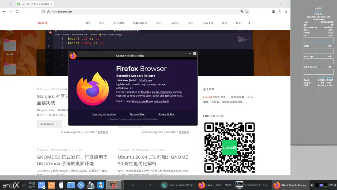 antiX 26 正式发布,这是基于 Debian 13 的一次重要大版本更新。作为一款以轻量化著称的发行版,antiX 依然坚持“不使用 systemd”的核心理念,在当前主流 Linux 生态中保持着非常鲜明的特色。