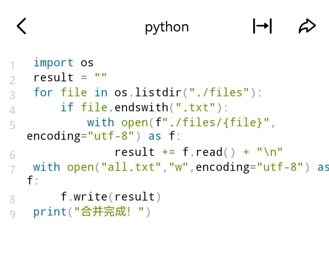 把一个文件夹里所有 .txt 文件内容合并,这是办公/数据最常用的需求。