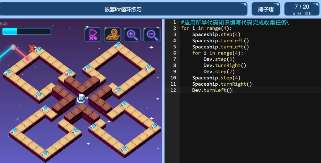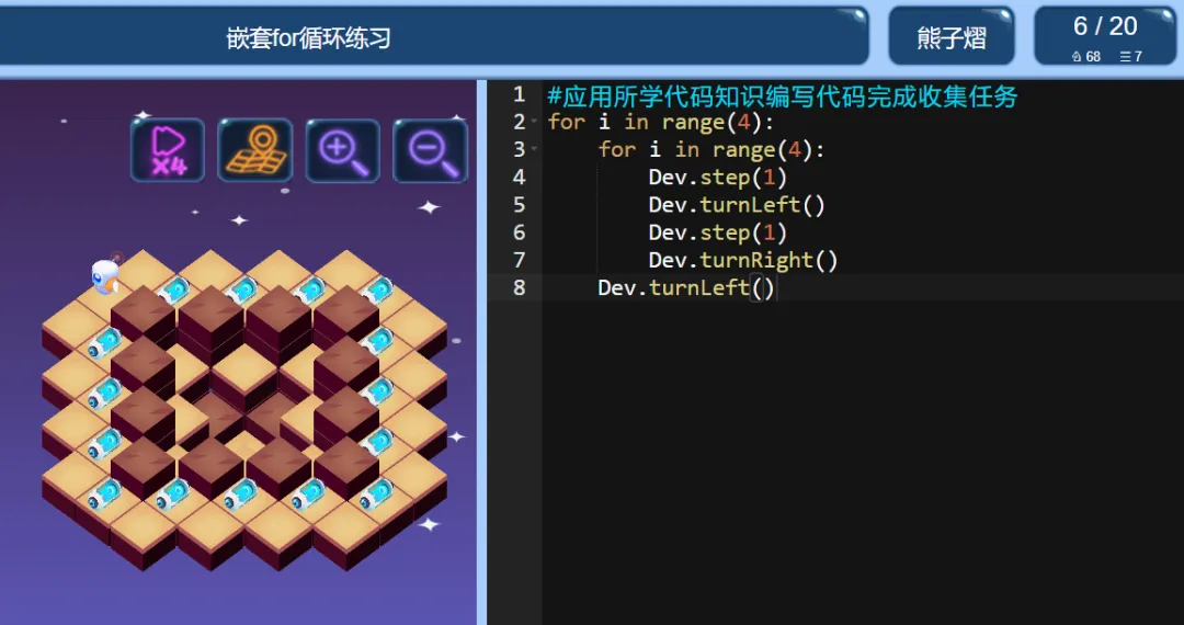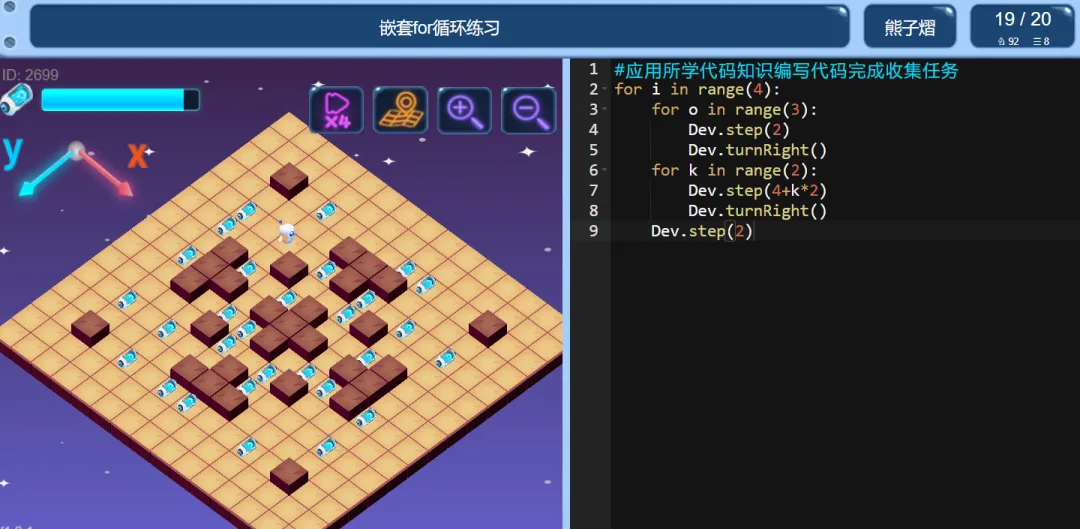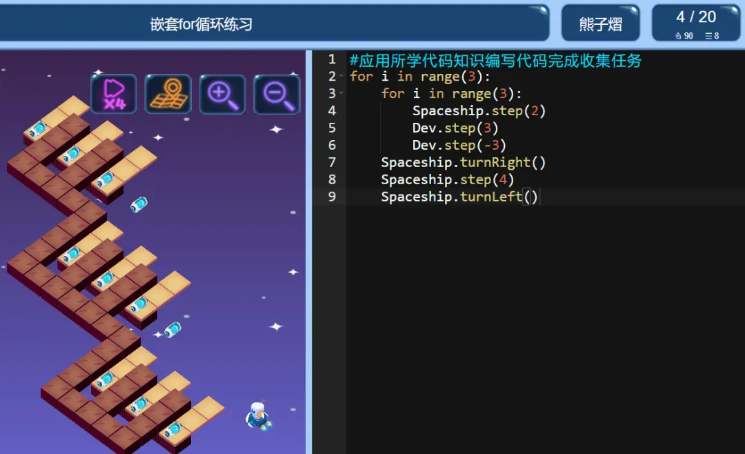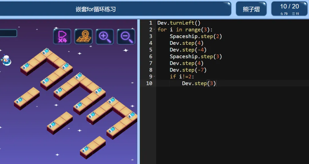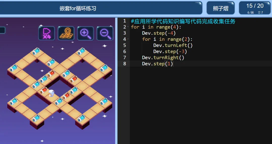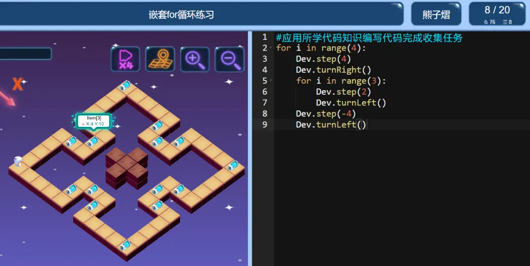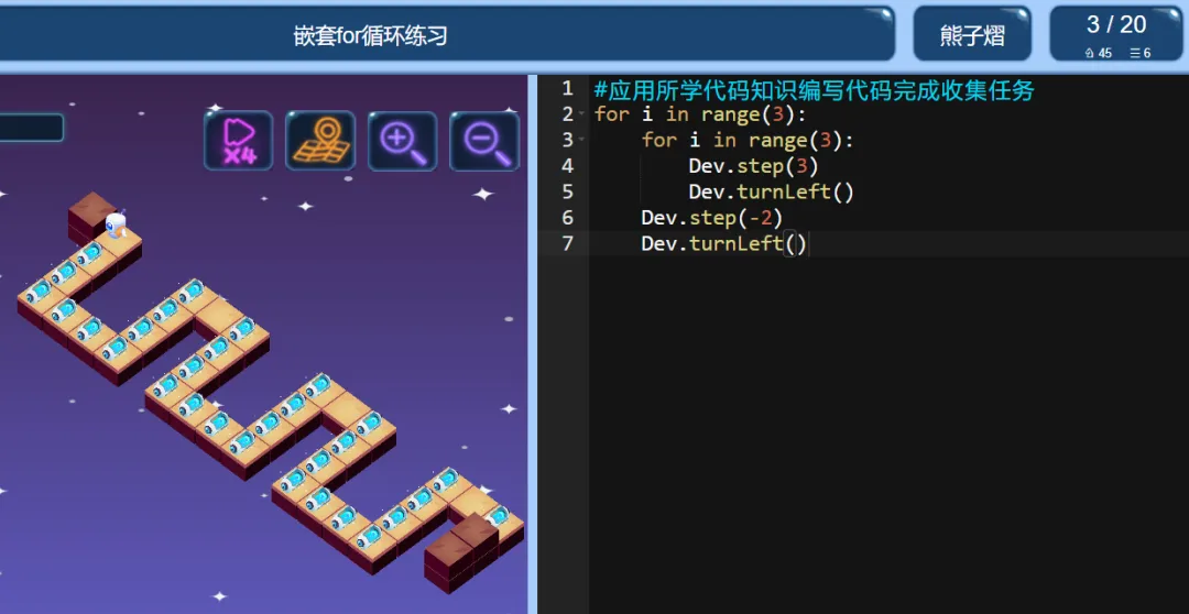 >ICode Python 四级训练场 嵌套for循环练习