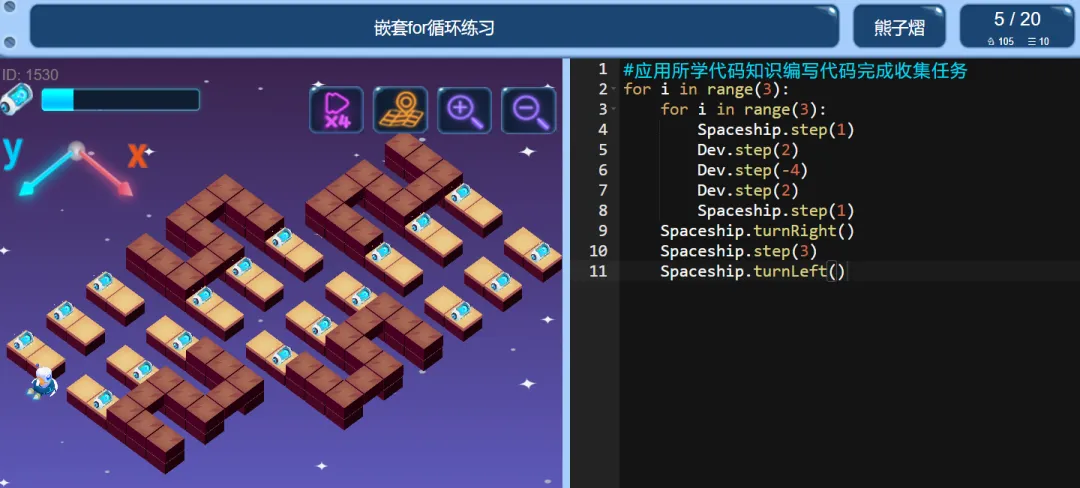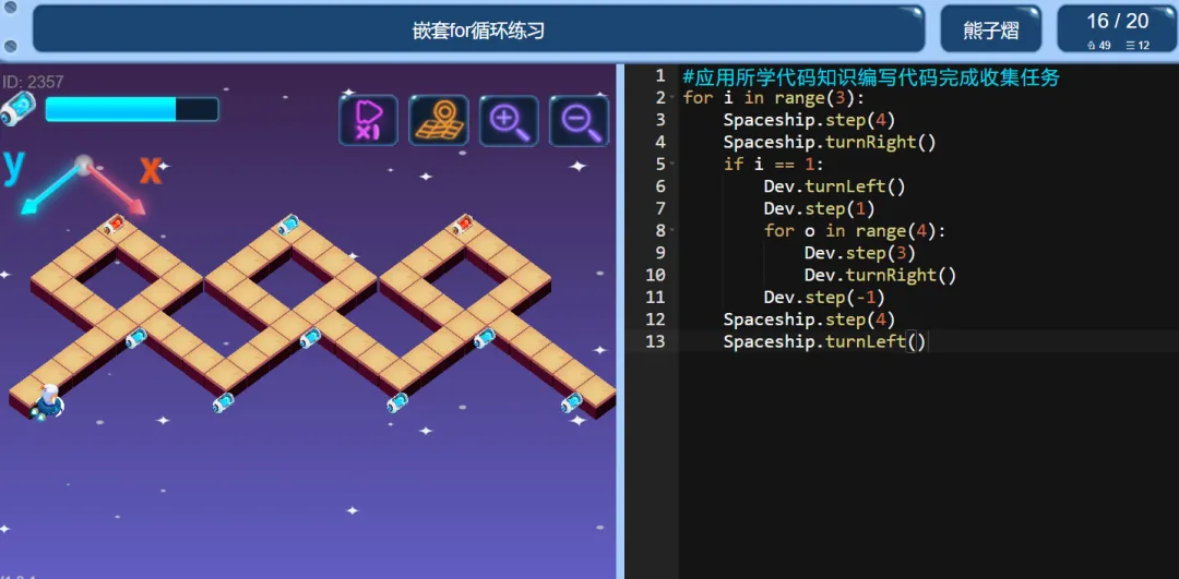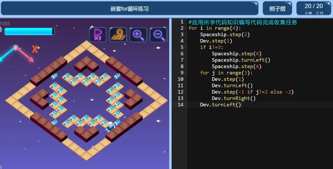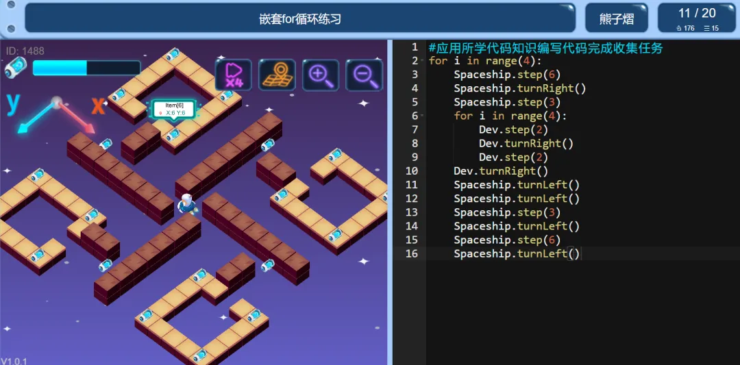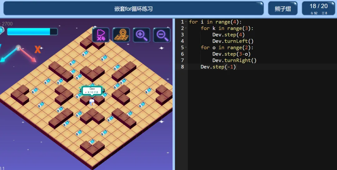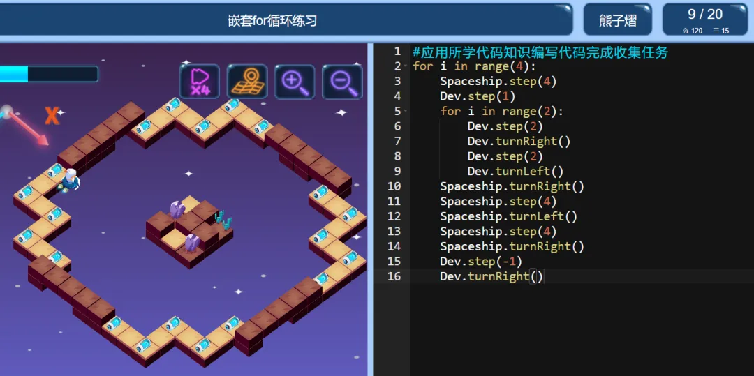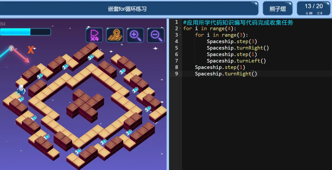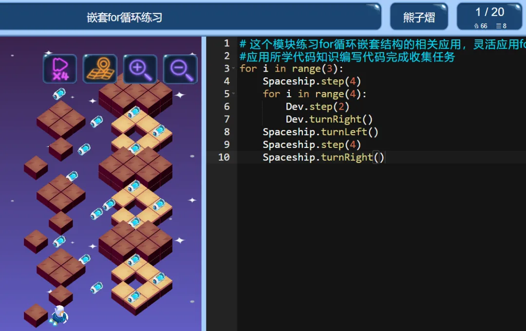>ICode Python 四级训练场 嵌套for循环练习