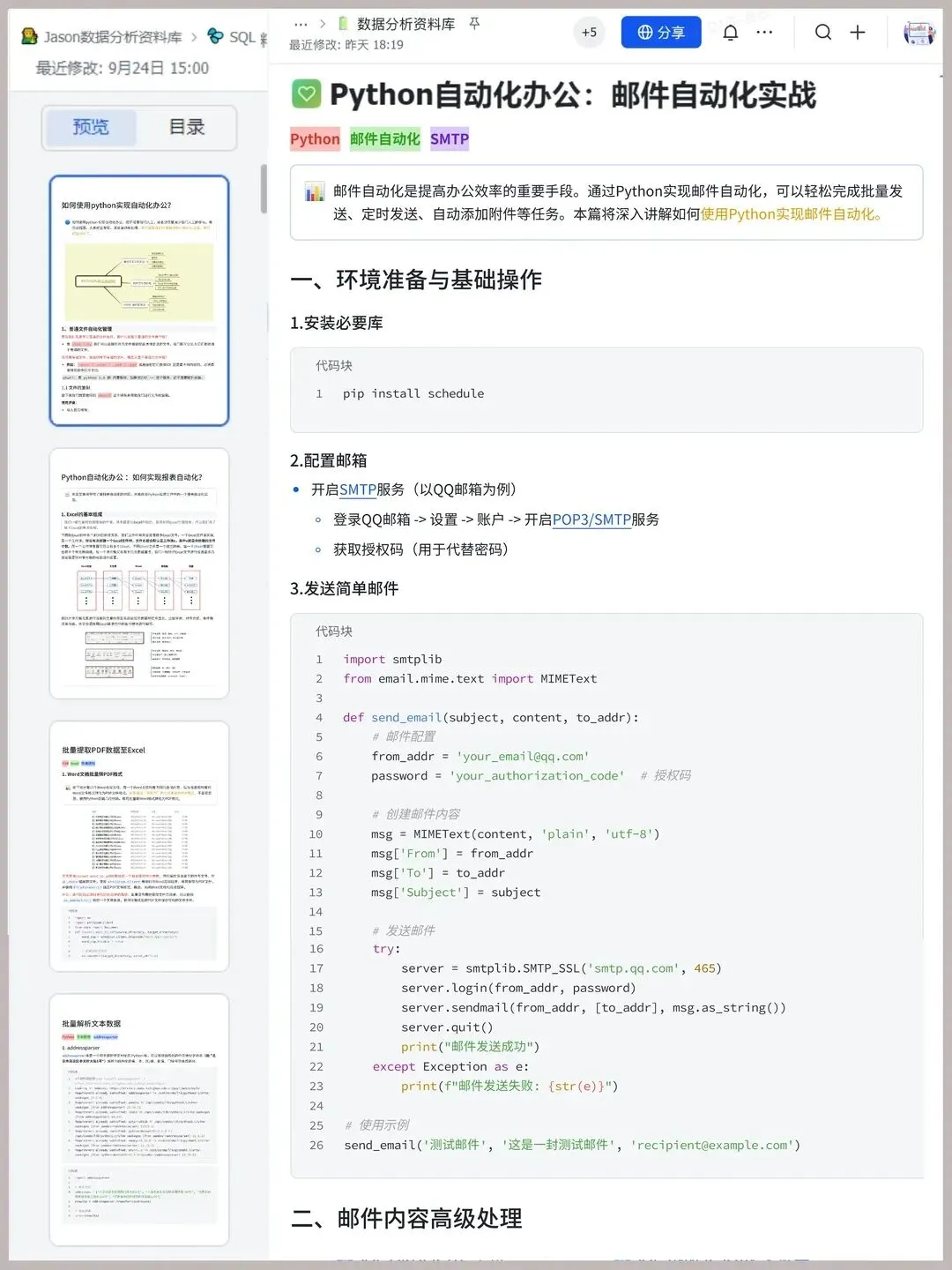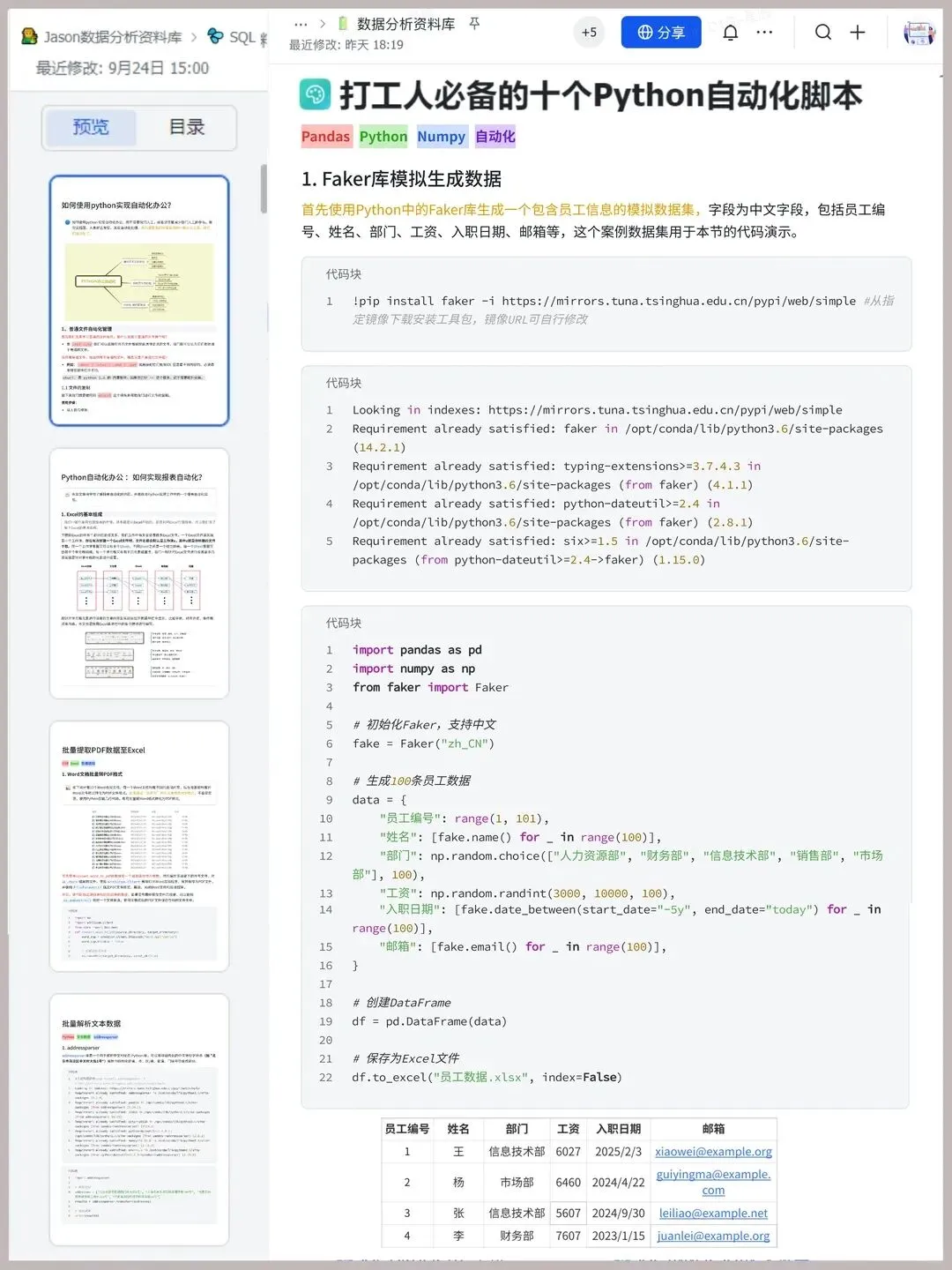 👩💻大家都知道现在工作内容是不断增加的,而对于我也是一样的,面对成倍的数据或者多个工作内容需要处理,这个时间成本是很大,也大大降低我们的工作效率.📊今天特意趁着上班摸鱼的时间给大家整理了10个自动化办公方式,这些代码也是我实际工作中一直在用的,效果也是很可观的,掌握这些自动化技巧,日常工作效率至少提升两倍❗️