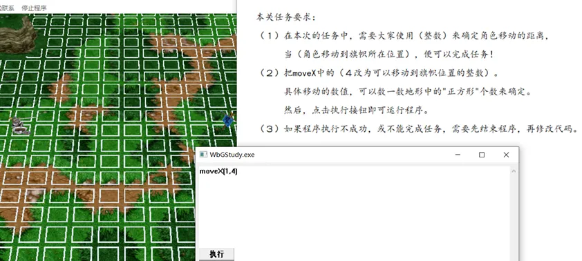 通过Python的代码,运用(整数)让游戏中的角色移动到右方的旗帜即可完成任务,到达下一关。