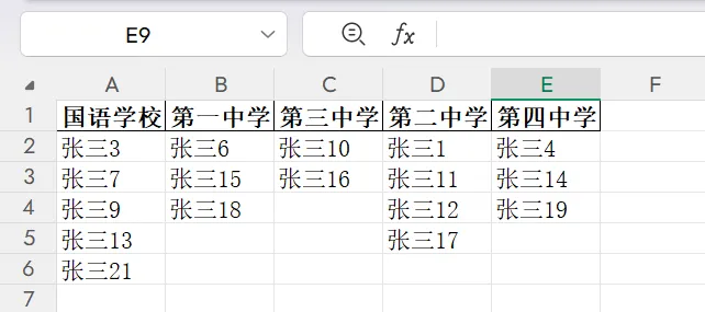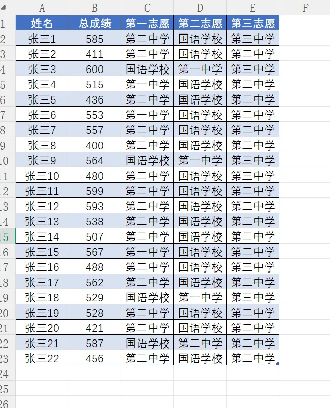 👉 这里有个关键点: “第二中学”存在两个批次(560 / 500)