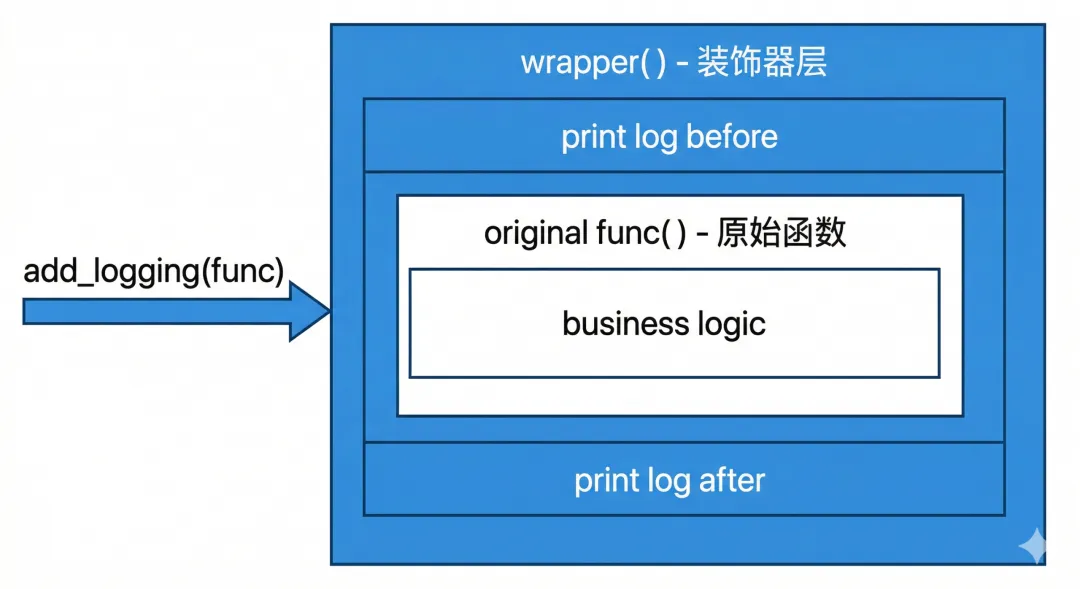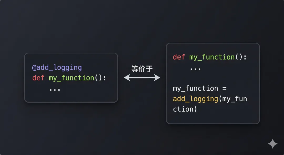@add_logging 就是 my_function = add_logging(my_function) 的语法糖,完全等价,但更简洁优雅。