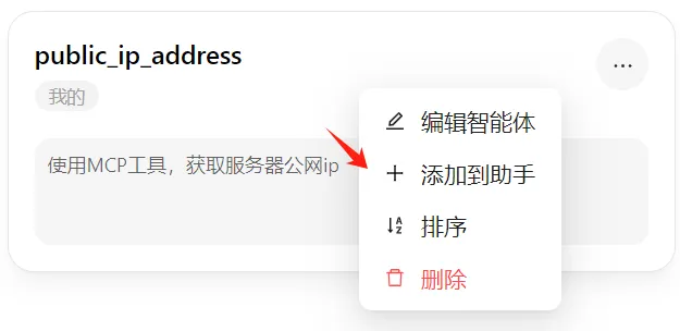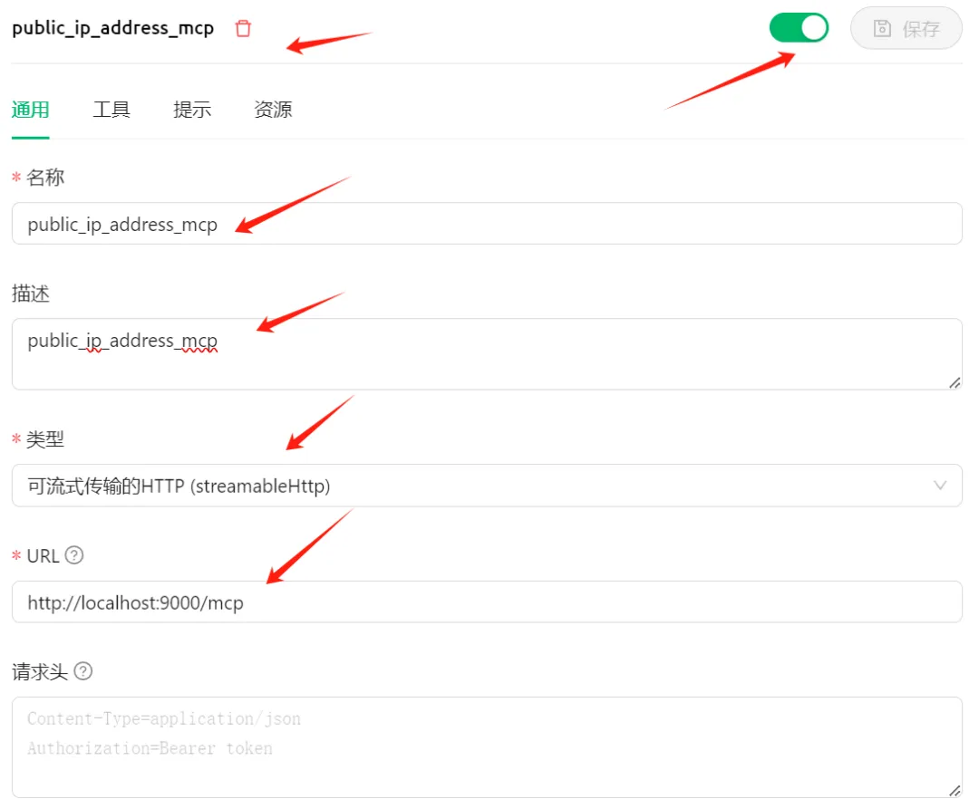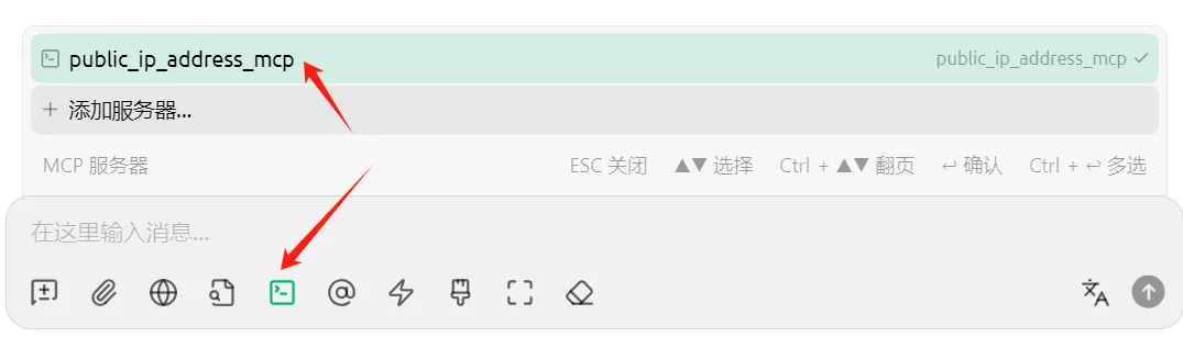 import jsonimport requestsfrom fastmcp import FastMCPmcp = FastMCP("Demo 🚀")@mcp.tool()def get_public_ip_address() -> str: """ 获取服务器公网 IP 地址 返回: str: 当前网络的公网 IP 地址 """ try: response = requests.get("http://ip-api.com/json") response.raise_for_status() # 检查 HTTP 请求是否成功 content = json.loads(response.text) return content.get("query", "Unknown IP") # 提供默认值以防字段缺失 except requests.RequestException as e: print(f"请求错误: {e}") return "Request Failed" except json.JSONDecodeError as e: print(f"JSON 解码错误: {e}") return "Invalid Response"if __name__ == "__main__": # mcp.run() mcp.run(transport="streamable-http", host="0.0.0.0", port=9000, path="/mcp")