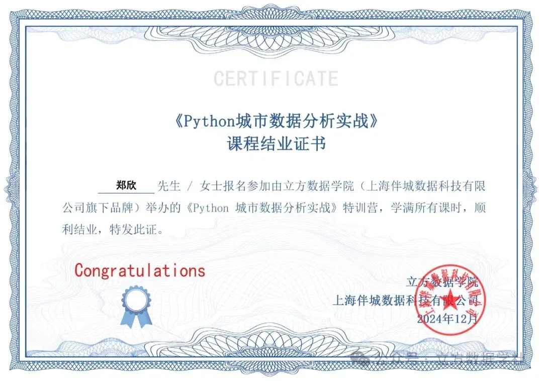 通过上述体验课,你可以了解大数据与城市研究的关系,了解Python与城市数据分析的关系,详细了解课程,以及了解立方数据学院上课网站!添加下面客服获取体验课!