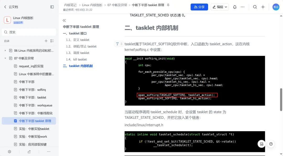 中断下半部 tasklet 原理: