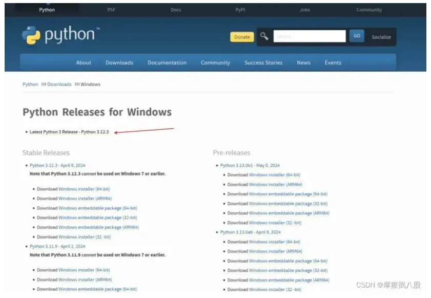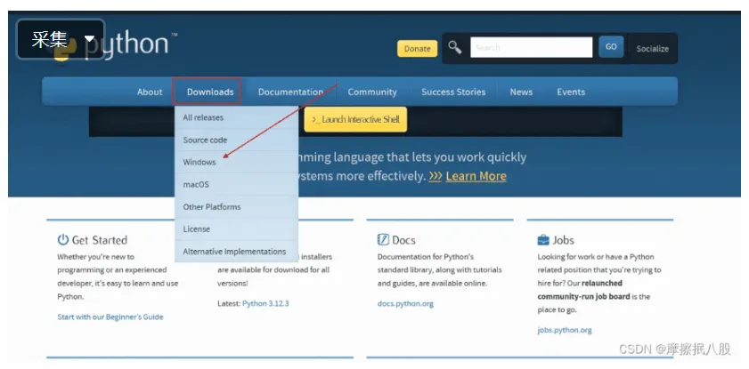 ✅️ 第一步:访问 Python 官方网站(Welcome to Python.org),点击页面顶部的 “Downloads” 菜单,选择 “Windows”(Mac 或 Linux 用户可选择对应系统),进入下载专区。