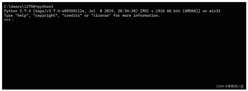 ✅️ 第七步:检查安装是否成功 —— 按下 “Win+R” 组合键,输入 “cmd” 并回车,打开命令提示符;在窗口中输入 “python3”(若安装文件夹中 Python 程序名为 “python”,则输入 “python”),如果出现 “>>> ” 提示符,说明安装和环境配置都没问题,关闭命令窗口即可。