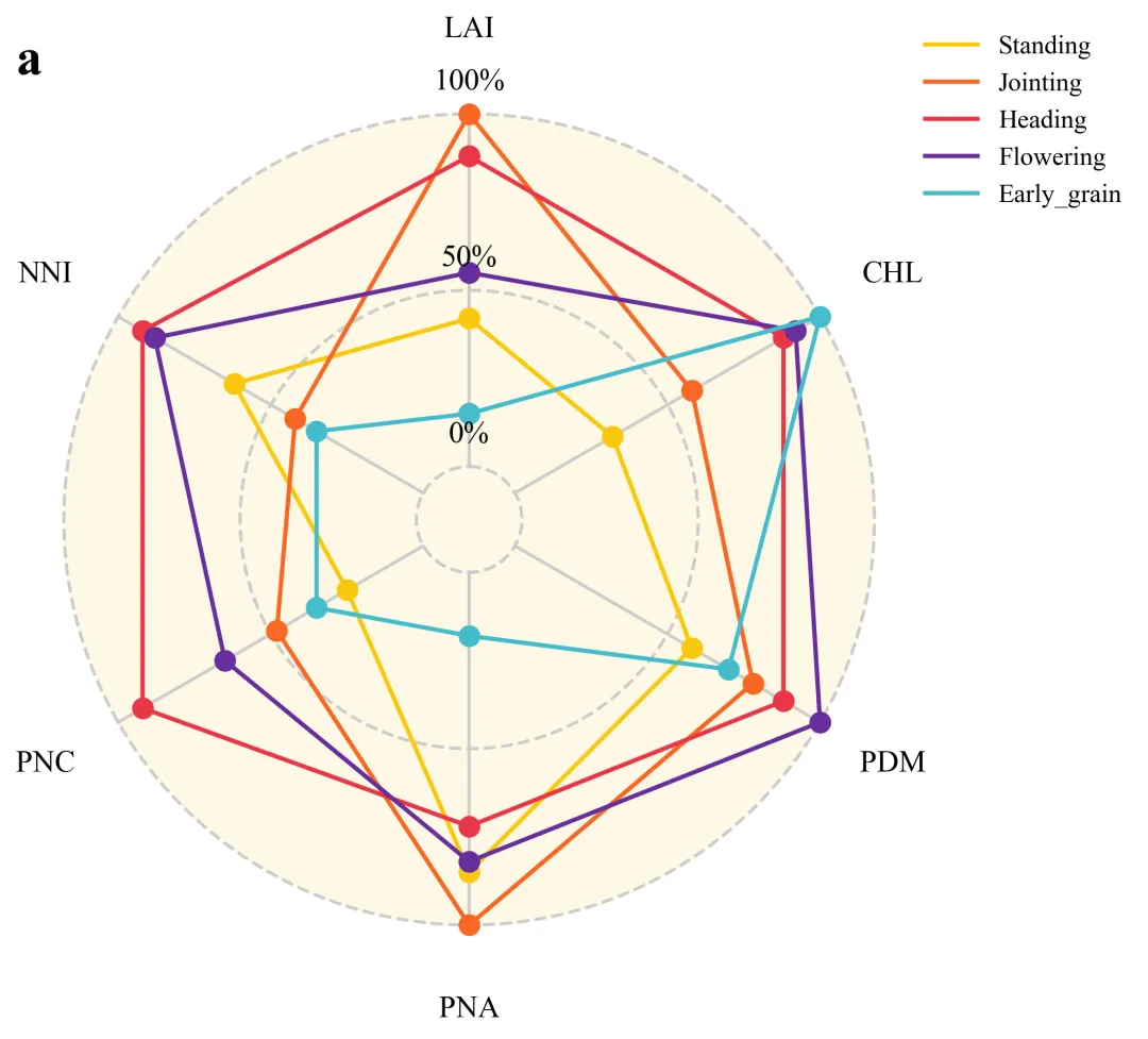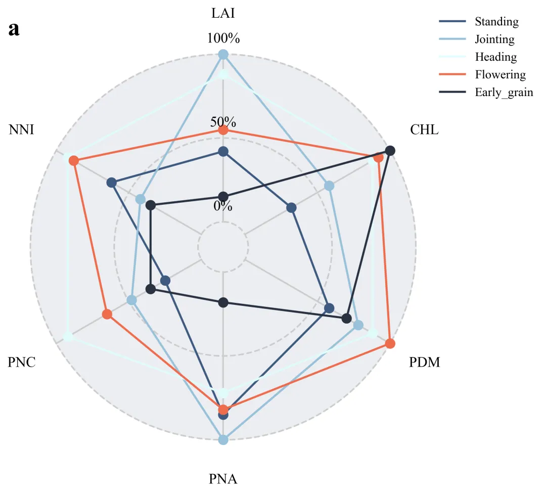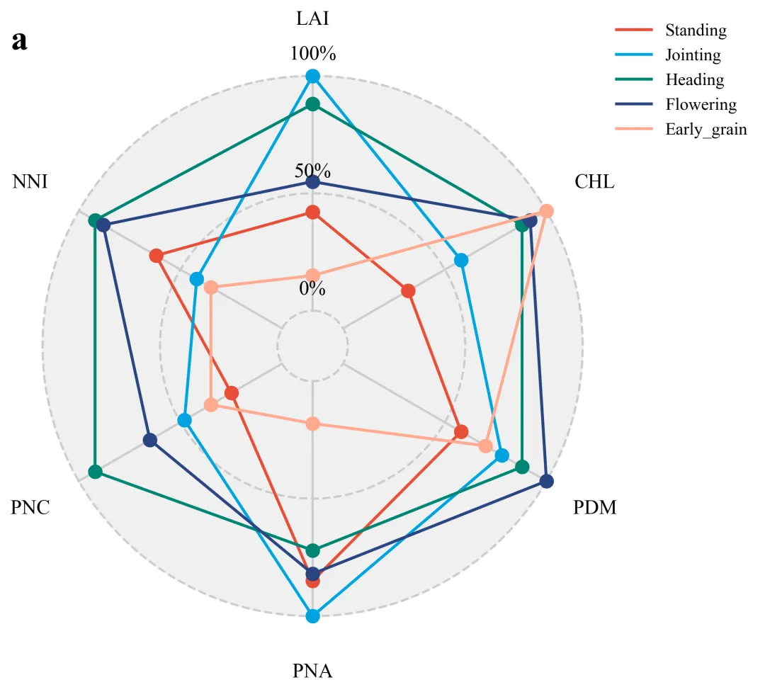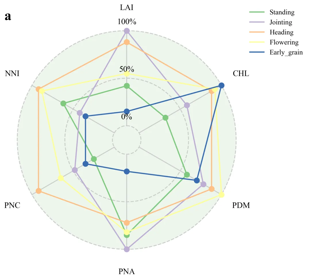 #图例ax.legend(loc='upper right', #位置bbox_to_anchor=(1.3, 1.1), #坐标fontsize=12, #大小frameon=False) #去掉图例自带的边框label_padding = 0.05 #给手动要添加的刻度文本一个额外的微调极径距离#子图编号fig.text(0.1, #x0.9, #y'a', #编号fontsize=24, #大小fontweight='bold') #加粗ax.tick_params(pad=20) #刻度参数