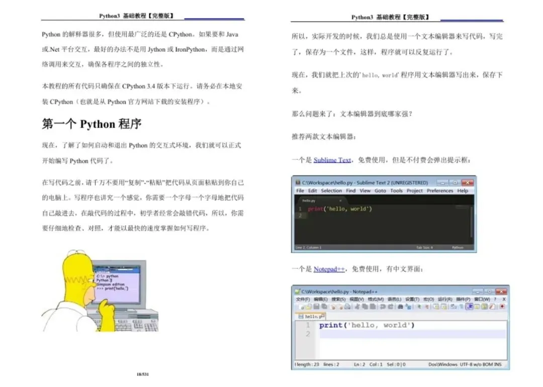 而廖雪峰老师撰写的《Python3 基础教程》,正是这扇大门的 “黄金钥匙”—— 全书 531 页,以零起点、全中文、重实践的风格,把复杂的编程逻辑拆解为易懂的步骤,从基础语法到高级应用,从代码示例到实战项目,全面覆盖 Python 学习的核心知识点,堪称编程入门的 “圣经” 级教材。