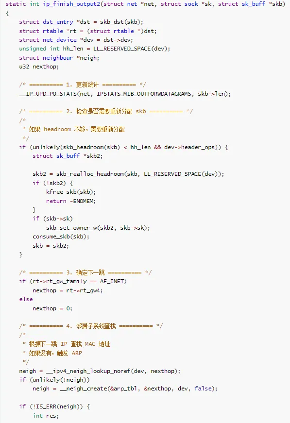 * ip_finish_output2 - 完成输出(第二阶段)