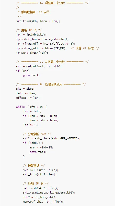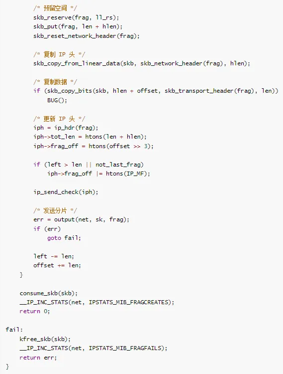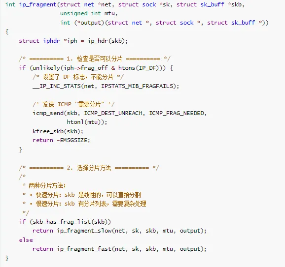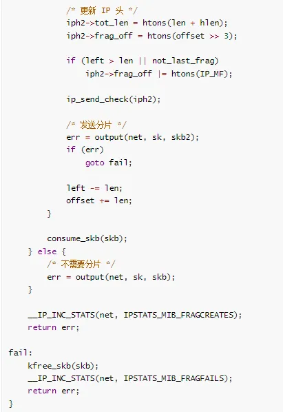 net/ipv4/ip_fragment.c - IP 分片(已合并到 ip_output.c)