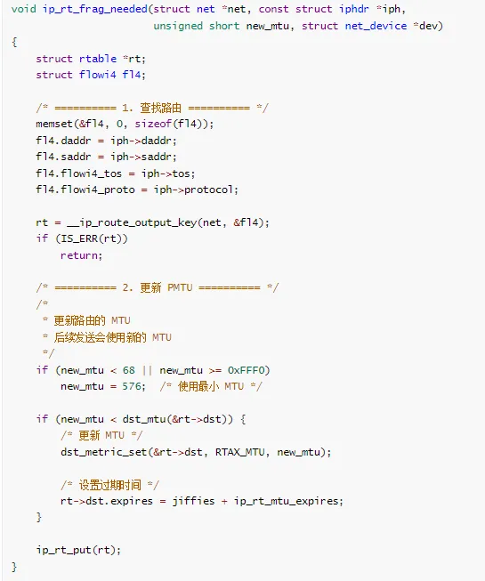 * ip_rt_frag_needed - 处理 ICMP "需要分片" 消息