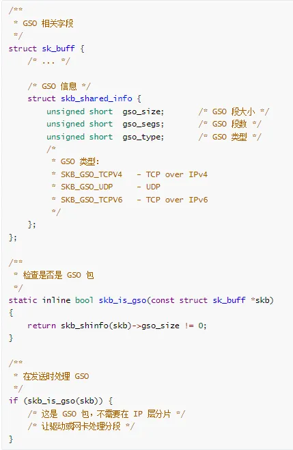GSO:软件实现,在驱动层分段