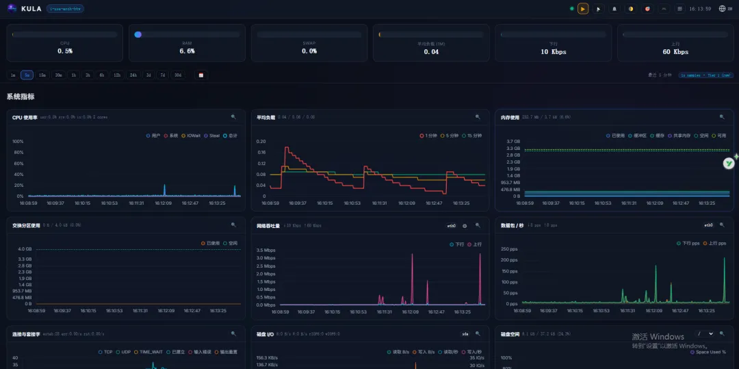 Kula 是一款使用 Go 和 JS 编写的轻量级 Linux 服务器监控工具(采用 GPL v3 协议),它通过直接读取 /proc 和 /sys 目录,每秒采集一次系统指标,并将其存储在内置的分层环形缓冲区(Ring-buffer)中