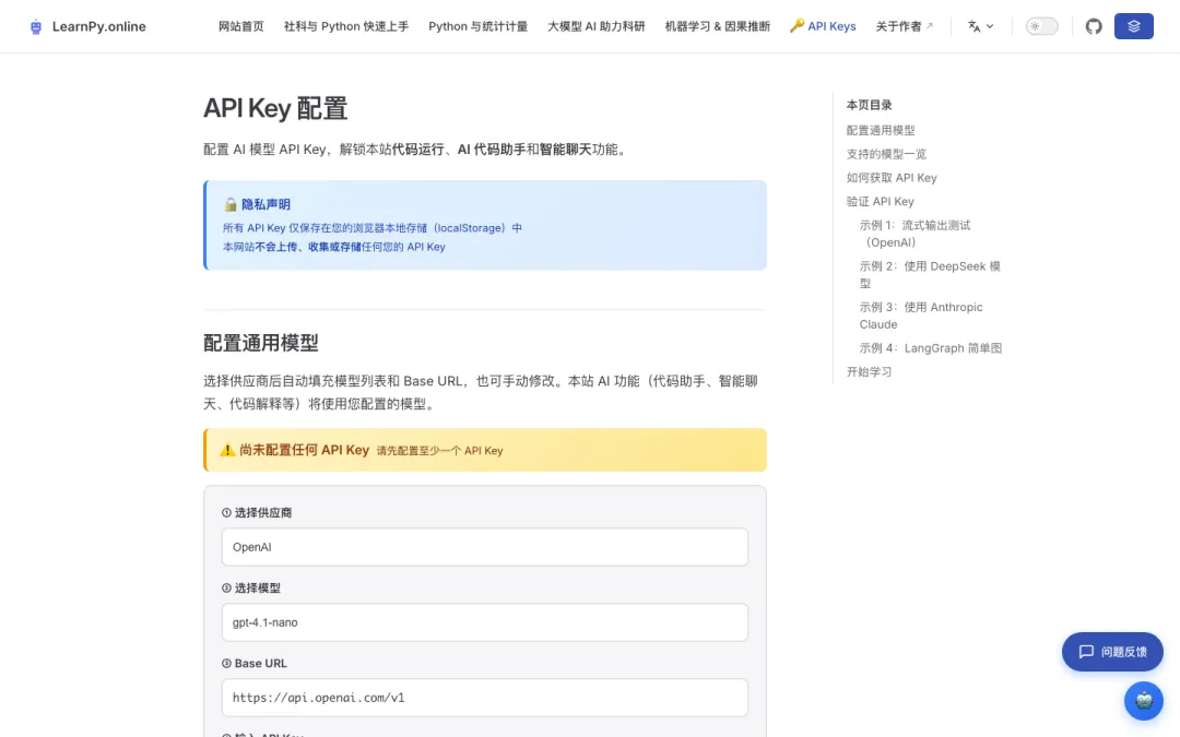 在 API Keys 页面 配置好你的 API Key,就能在课程中直接调用大模型运行代码。