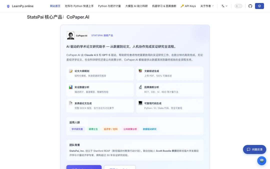 StatsPai 的核心产品:CoPaper.AI