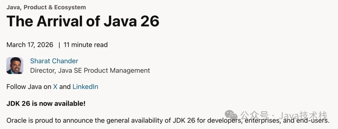 Java 25 刚发布半年之久,很多人可能还没听说过,现在 Java 26 又来了,我真的人麻了啊。。。