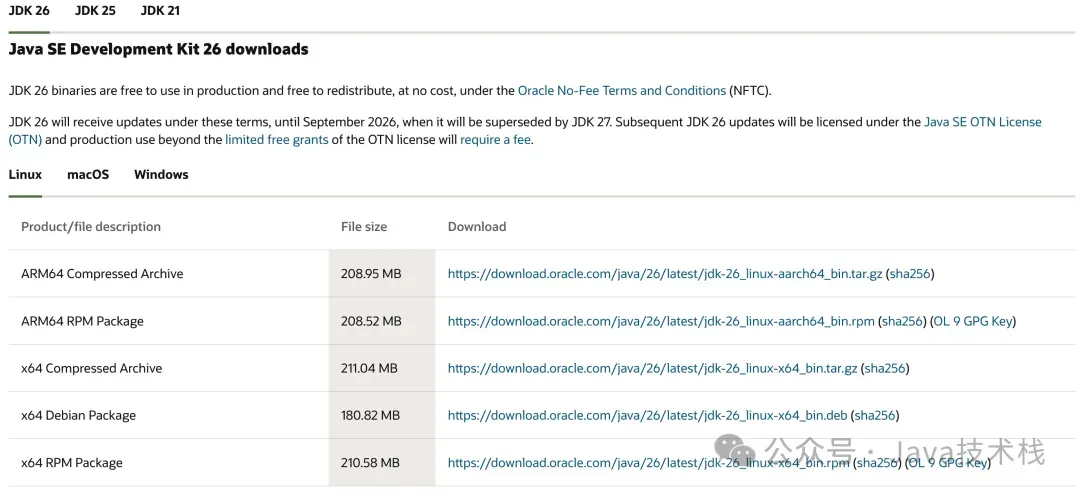 Java 26 的下载入口: