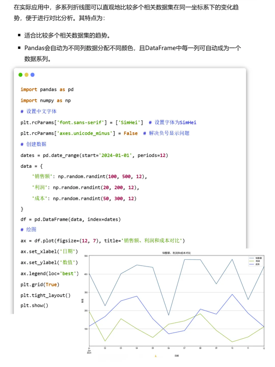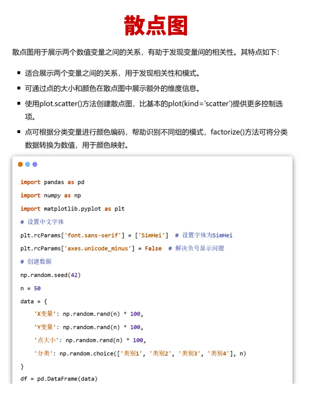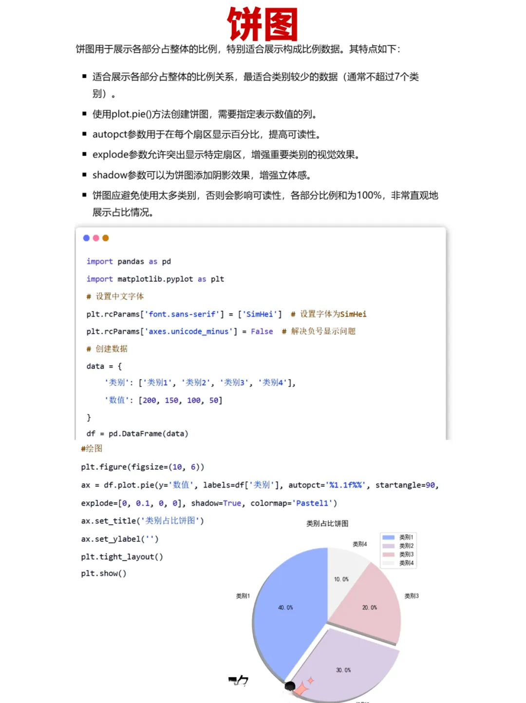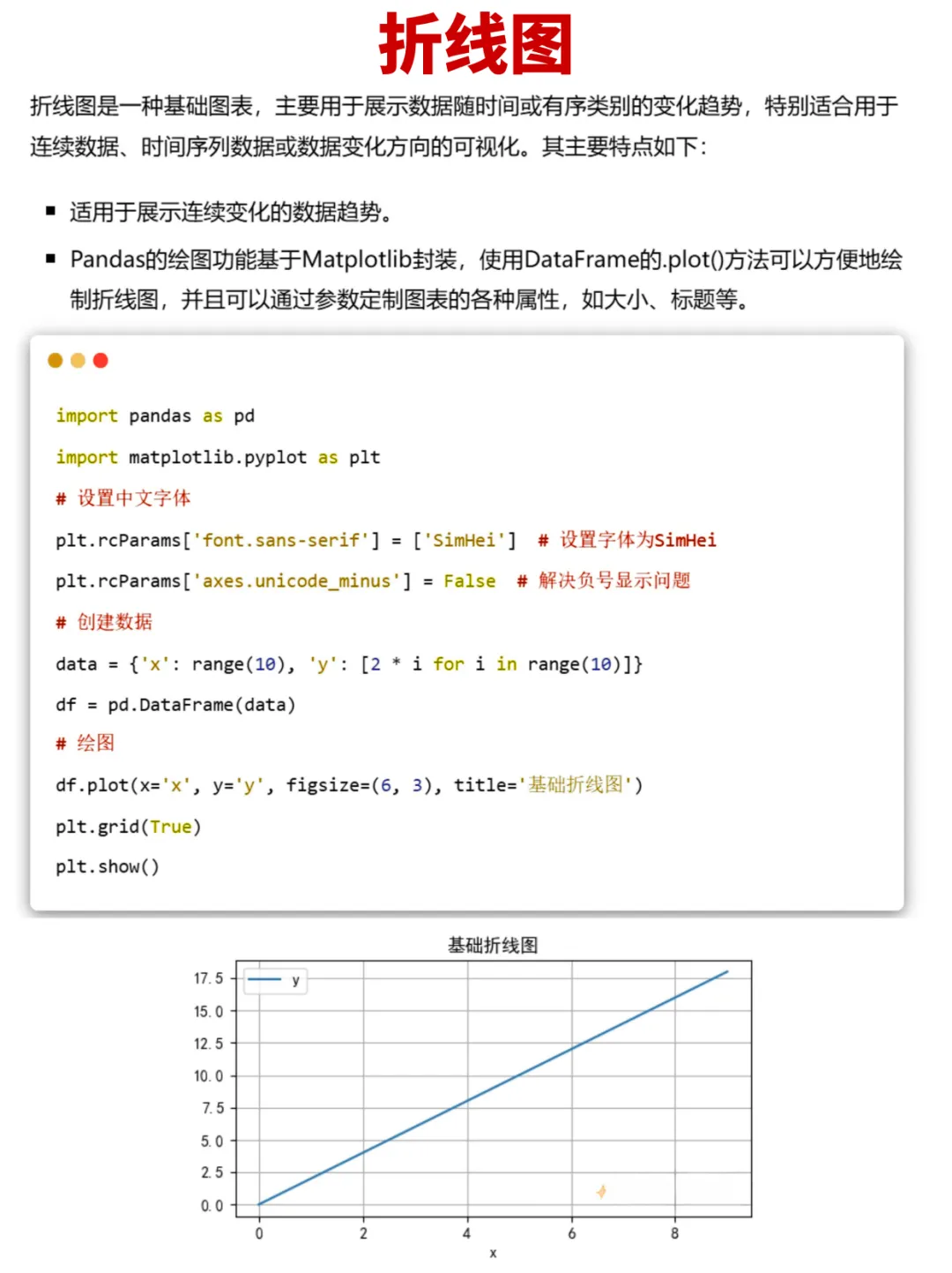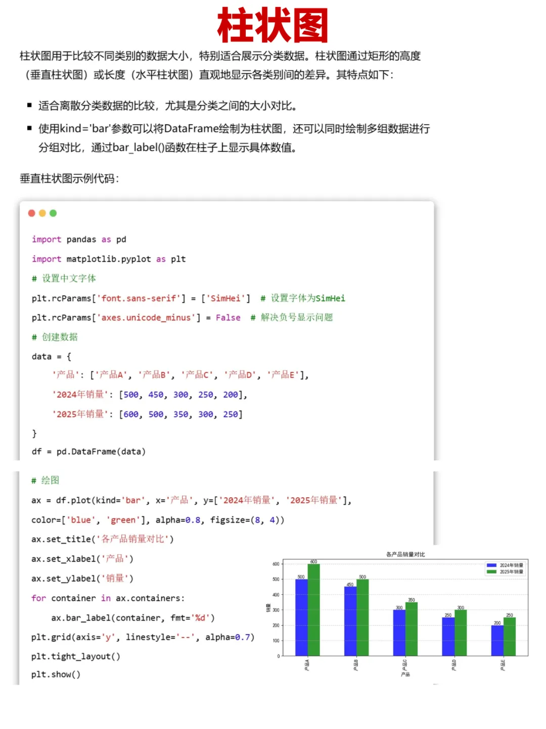下列图片详细介绍了 Python 基础图表的绘制代码,在 Python 数据分析领域,Pandas 凭借其优异的数据处理与可视化功能备受青睐。