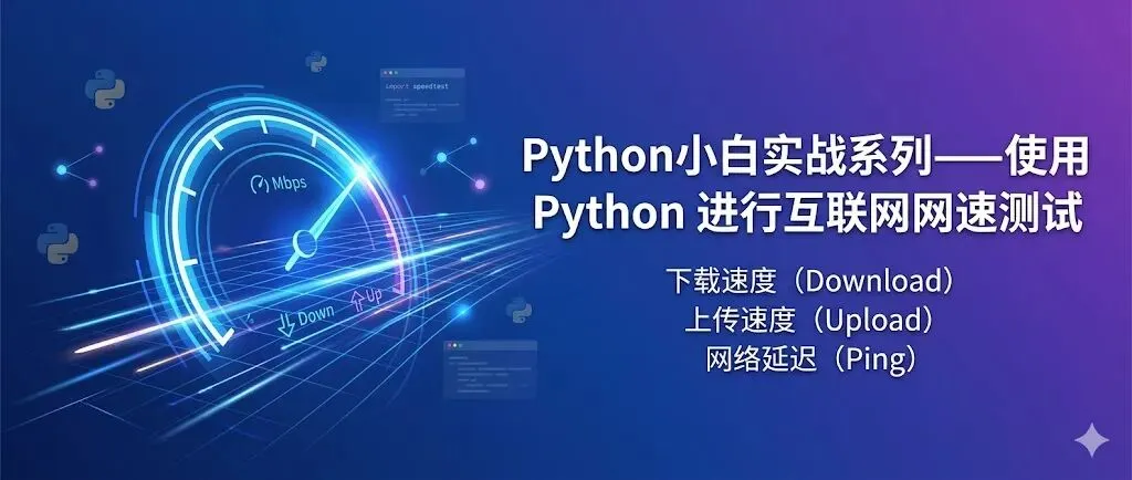 import speedtest# 初始化 Speedtest 客户端st = speedtest.Speedtest()print("正在获取服务器列表并选择最佳服务器...")# 寻找距离最近、延迟最低的测试服务器st.get_best_server()print("正在测试下载速度...")# 获取下载速度(返回单位为 bits/sec)download_speed = st.download()print("正在测试上传速度...")# 获取上传速度(返回单位为 bits/sec)upload_speed = st.upload()# 获取 Ping 值(毫秒)ping = st.results.ping# 将结果转换为 Mbps 并格式化输出print(f"\n--- 测试结果 ---")print(f"下载速度: {download_speed / 10**6:.2f} Mbps")print(f"上传速度: {upload_speed / 10**6:.2f} Mbps")print(f"网络延迟 (Ping): {ping:.2f} ms")speedtest.Speedtest(): 创建一个测试实例,它是整个操作的核心。get_best_server(): 该方法会自动地理定位你的 IP 地址,并从全球成千上万个测试节点中选择一个响应最快的服务器,以确保测试结果的准确性。通过这个简单的练习,你可以看到 Python 在处理日常任务时的强大与便捷。你可以尝试进一步扩展这个脚本,比如将每次测试的结果自动保存到 Excel 表格中,或者在网速低于某个阈值时给你发送提醒。