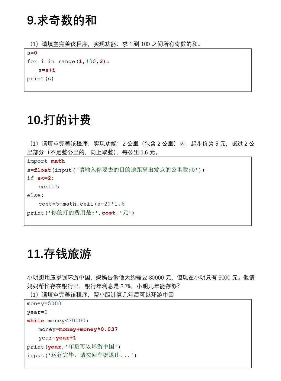 (2026经典版)Python经典100道例题练习