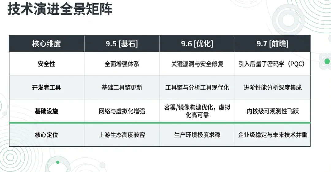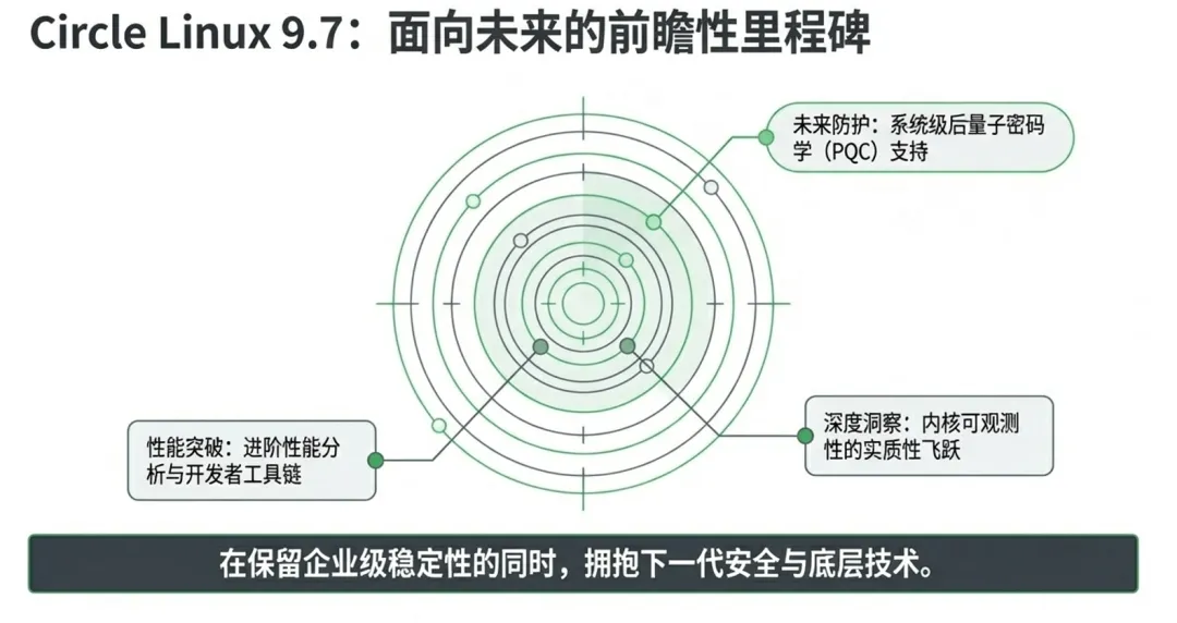 Circle Linux 是一个由全球社区驱动的开源操作系统项目,旨在构建一个构建一个稳定且强大的Linux生态系统。作为一个国际化社区驱动的开源举措。其核心目标是构建一个更强大的开源生态系统,为全球用户提供支持。Circle Linux 主要提供企业级且可直接用于生产环境的发行版,并保持与主流生态的高度兼容。其于 2025 年 12月 23 日发行的 9.5 至 9.7 三个版本中,不断优化内核观测性、开发工具链,并在 9.7 最新版本中引入了后量子加密等前沿技术,同时,也更加聚焦于系统安全性以及性能分析工具。