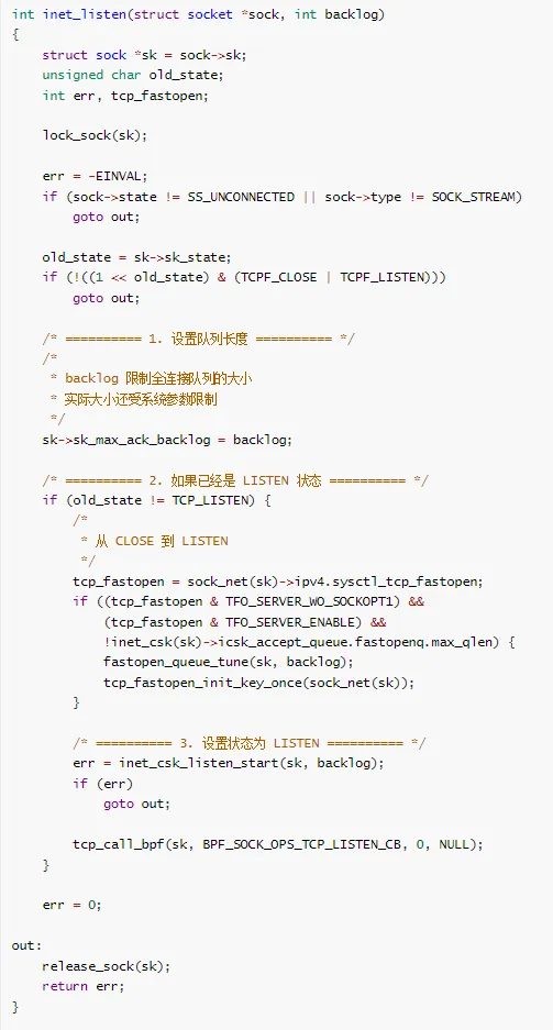 * inet_listen - 监听连接