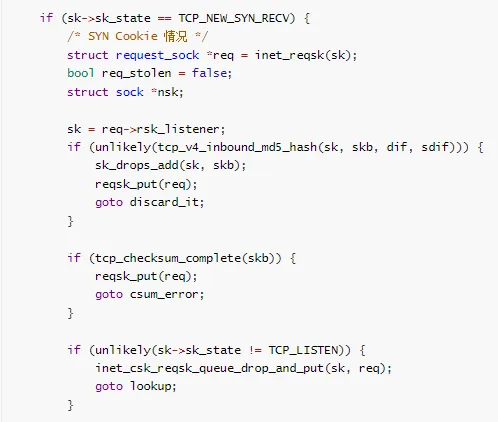 TCP_NEW_SYN_RECV, /* 新的 SYN 请求(SYN Cookie)*/
