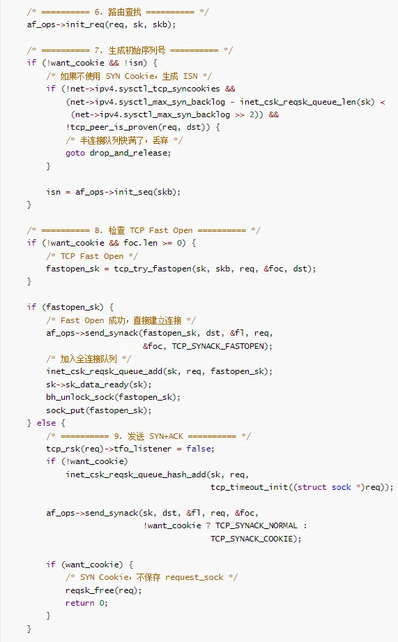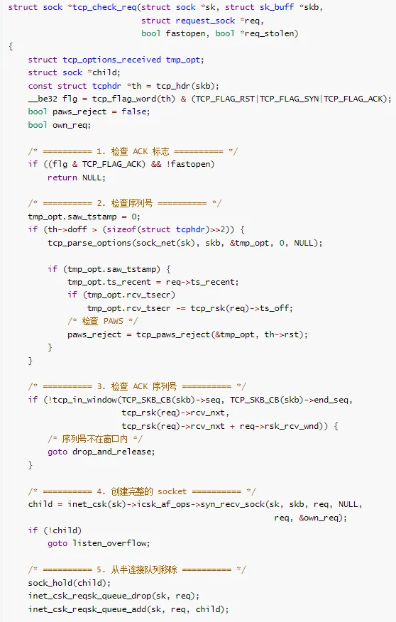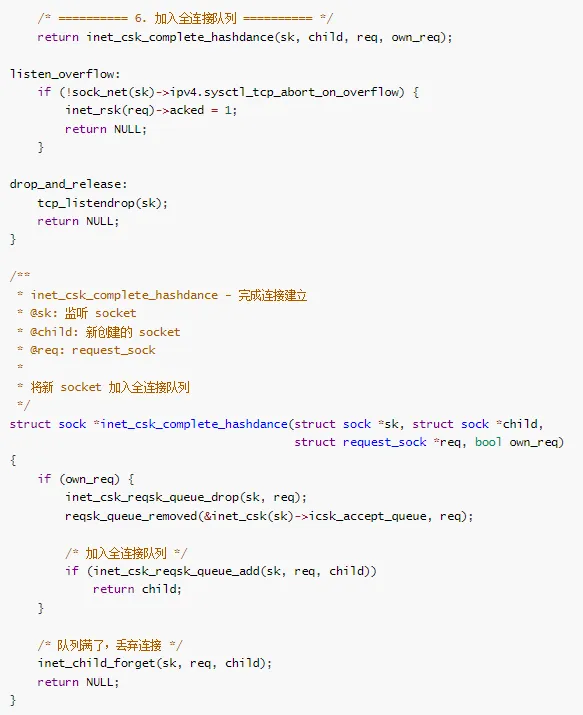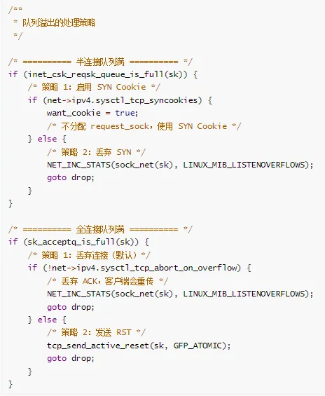 全连接队列检查:如果全连接队列满了,丢弃 SYN