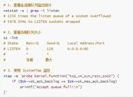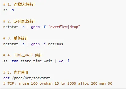 监控关键指标:队列溢出、重传率、TIME_WAIT 数量