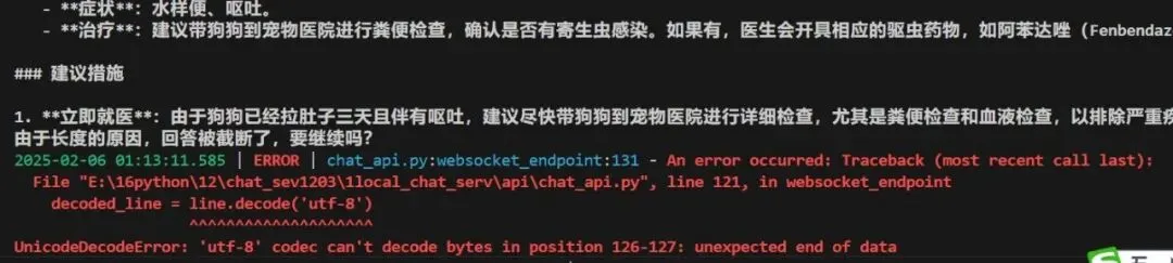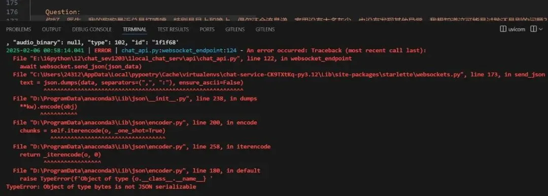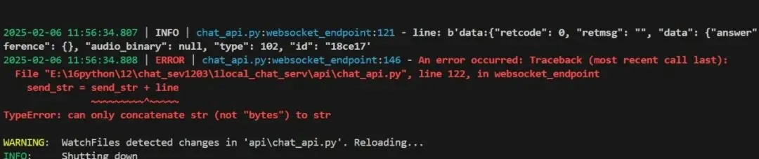 ans120: b'data:{"retcode": 0, "retmsg": "", "data": {"answer": "\xe6\x82\xa8\xe5\xa5\xbd", "reference": {}, "audio_binary": null, "type": 102, "id": "1f1f68'注:需要按行接收处理一下,修改代码如下: