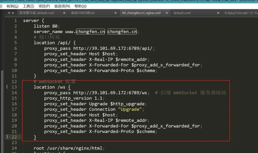 本地通过host文件,配置下转发和ws,突然有个想法,陈哥给我ssl证书文件了,我直接在本地配应该也是可以的,只是ip发生了变化,其它是一样的,把服务器上的配置拿过来,证书文件拿过来。