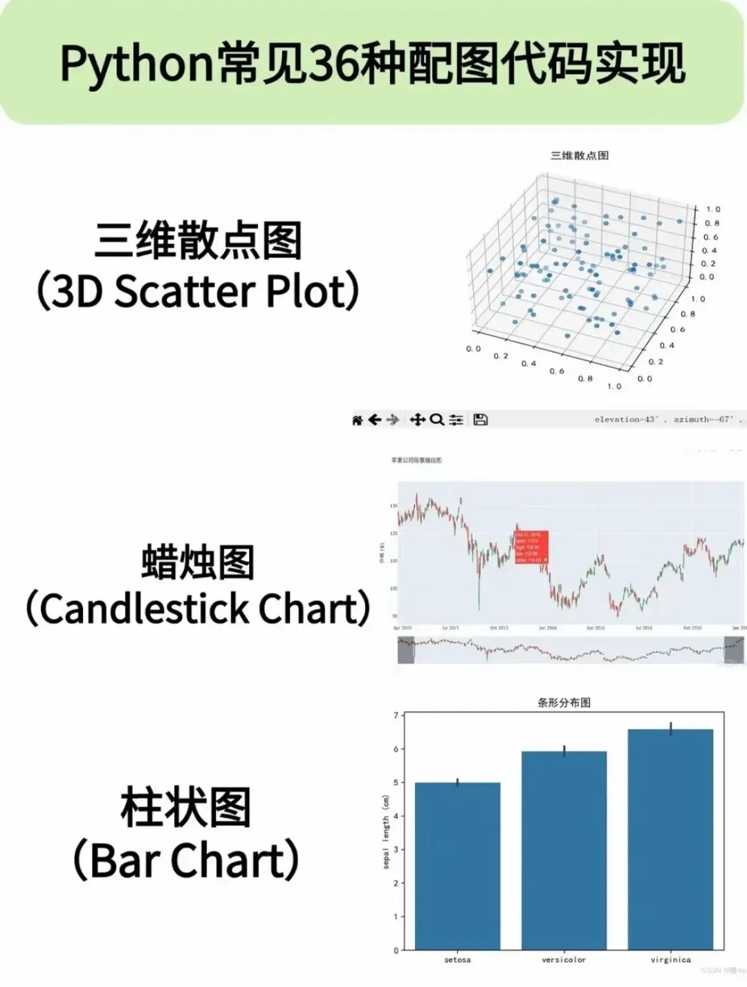 >Python常见的36种配图代码实现!建议码住!