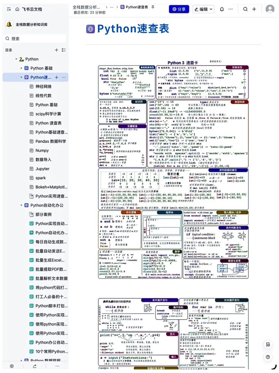 一图彻底掌握python!飞书中文python速查