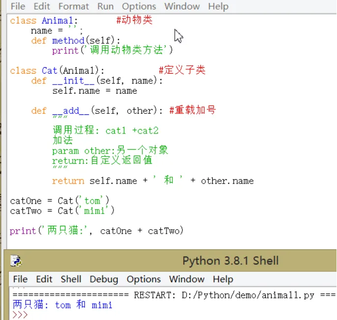 Python同样支持运算符重载,我们这里以加号示例,读者可以自己尝试对其他运算符重载。12、类属性与方法