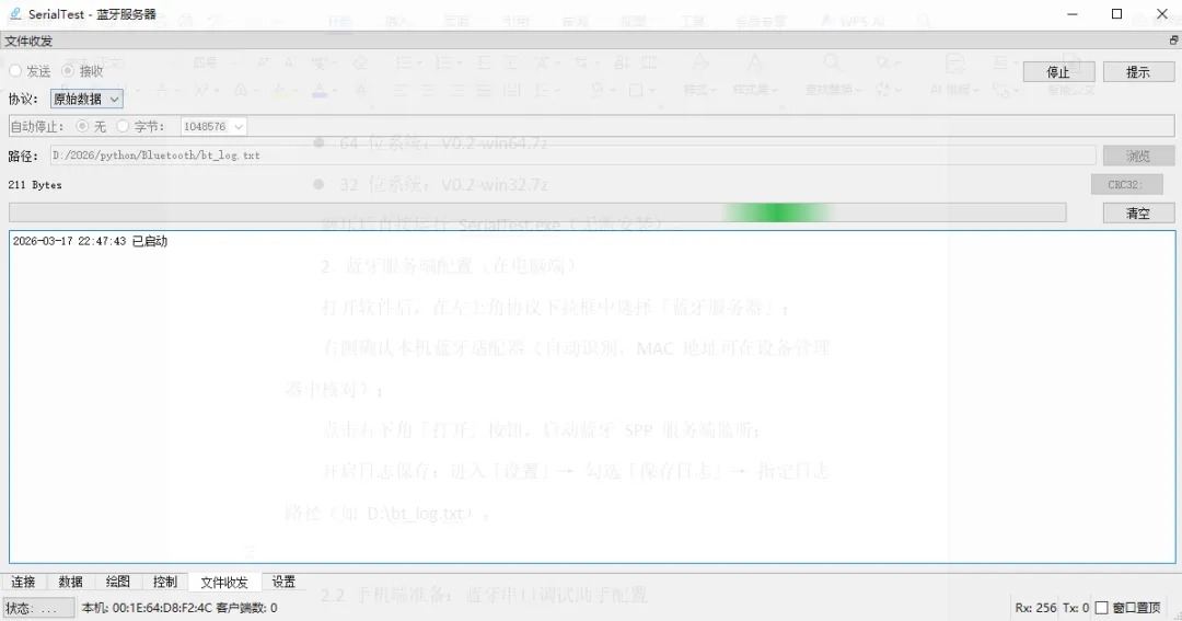 2.1 电脑端准备:SerialTest 蓝牙服务端配置