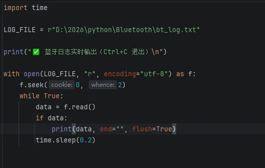 Python 仅需实时读取日志文件,即可实现蓝牙数据监控,代码极简、无卡顿、易维护: