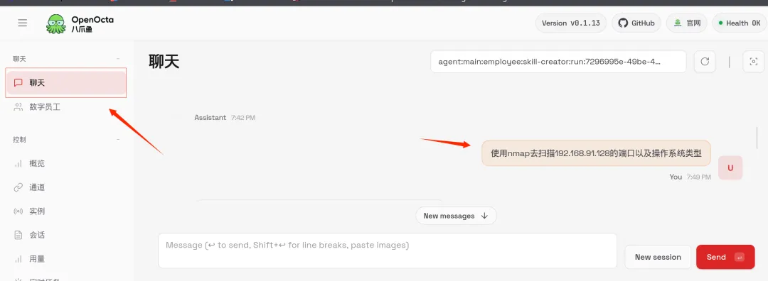 OpenClaw的前身可有个有趣的来历——它最初是奥地利程序员彼得·斯坦伯格(Peter Steinberger)在2025年11月某个周末灵光一闪搞出的小项目“Clawd”。今年1月29日,这款工具正式升级改名,变成了现在我们熟悉的OpenClaw。这款能在本地私有化部署的AI智能体,本领可不小:它能对接大模型,直接操控你电脑里的文件和应用,无论是清理邮箱、管理日程,还是跑脚本、发微信、网购下单……各种日常任务,它都能轻松搞定!OpenOcta(八爪鱼):一款国产化版的OpenClaw。提醒智能体可能会导致信息泄露以及其它意外问题,请谨慎使用!图1:OpenOcta智能体工具主界面二、在 Kali 中部署 OpenOcta