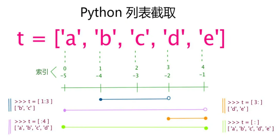和字符串一样,列表同样可以被索引和截取,列表被截取后返回一个包含所需元素的新列表。