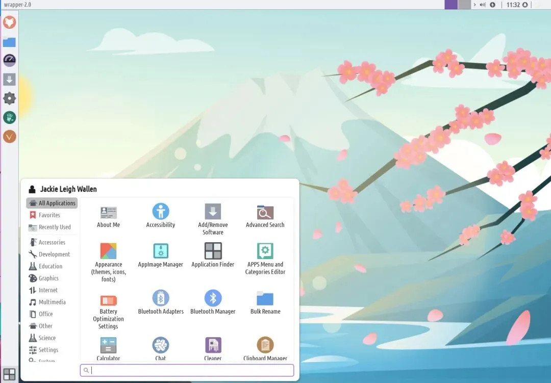 图 2: Tromjaro Xfce 桌面菜单显示了大量预装应用程序。