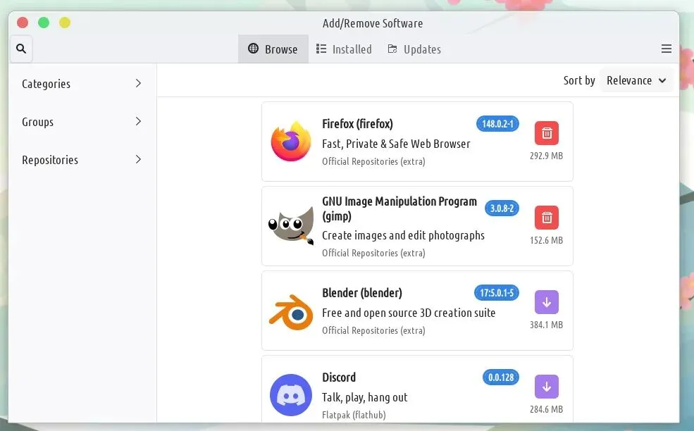 说到安装软件,Tromjaro 包含了 pacman 的图形用户界面前端 Pamac(图 4)。这是一个重要的补充,因为如果你是 Linux 新手,你不会想深入终端去安装应用程序。