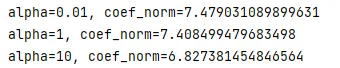 # file: ridge_bias_variance.pyimport numpy as npfrom sklearn.linear_model import Ridgedefmain(): np.random.seed(0) X = np.random.randn(100,10) beta_true = np.array([1,2,3,4,5,0,0,0,0,0]) y = X @ beta_true + np.random.randn(100)for alpha in [0.01, 1, 10]: model = Ridge(alpha=alpha) model.fit(X,y) print(f"alpha={alpha}, coef_norm={np.linalg.norm(model.coef_)}")if __name__ == "__main__": main()