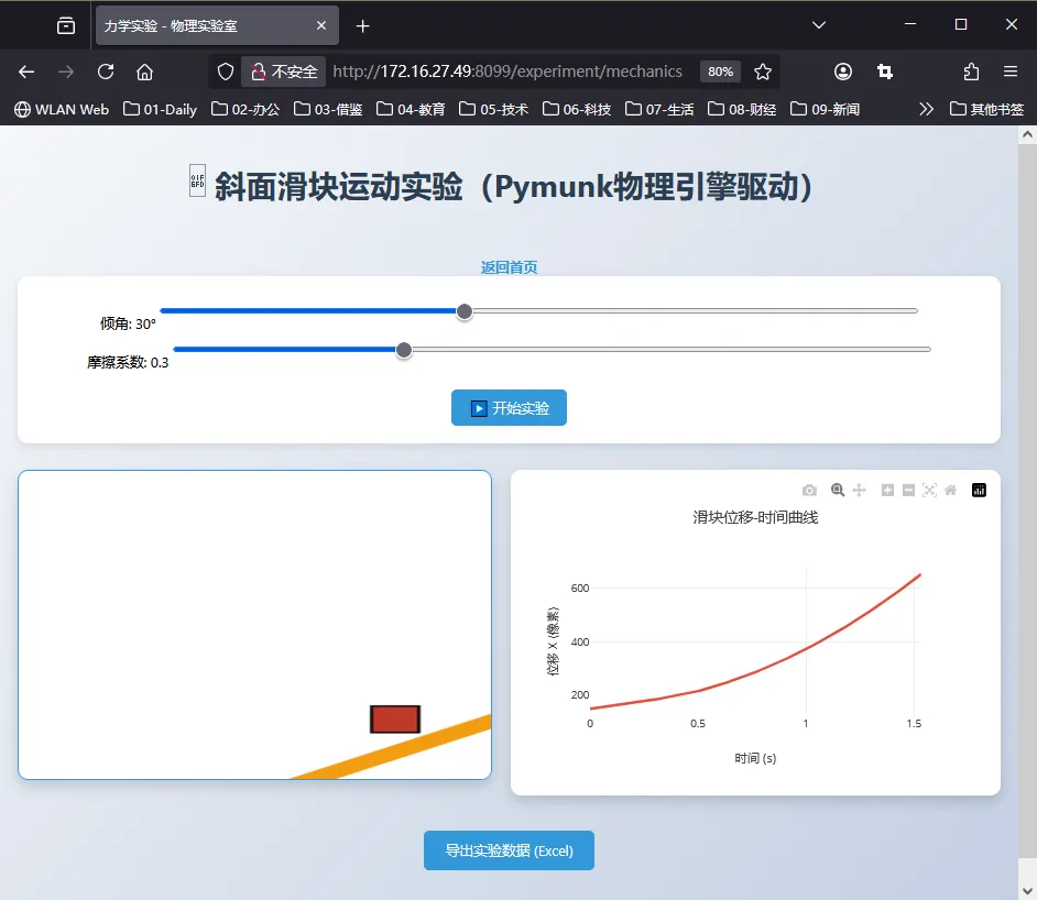 调整“斜角角度”和“摩擦系数”后,开始实验