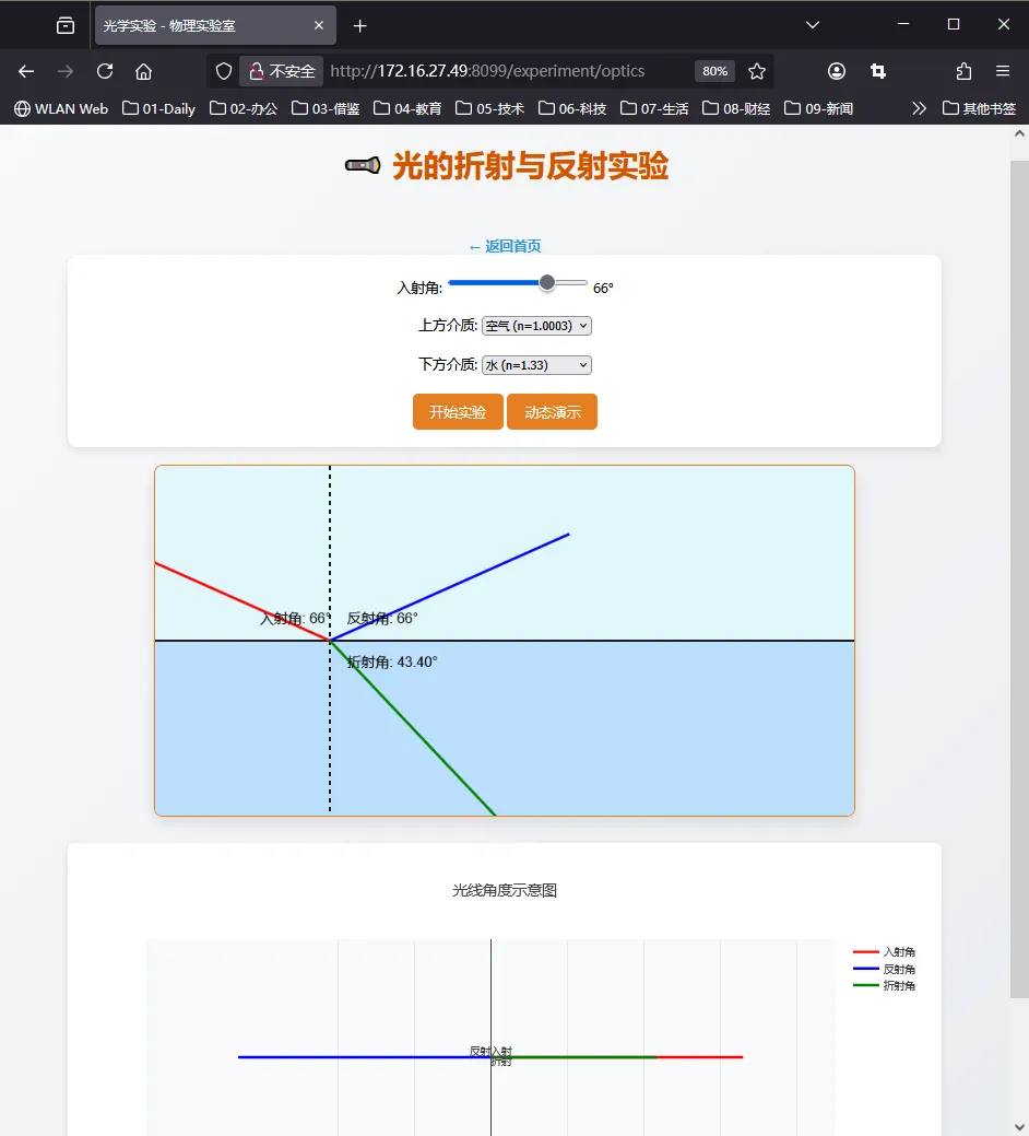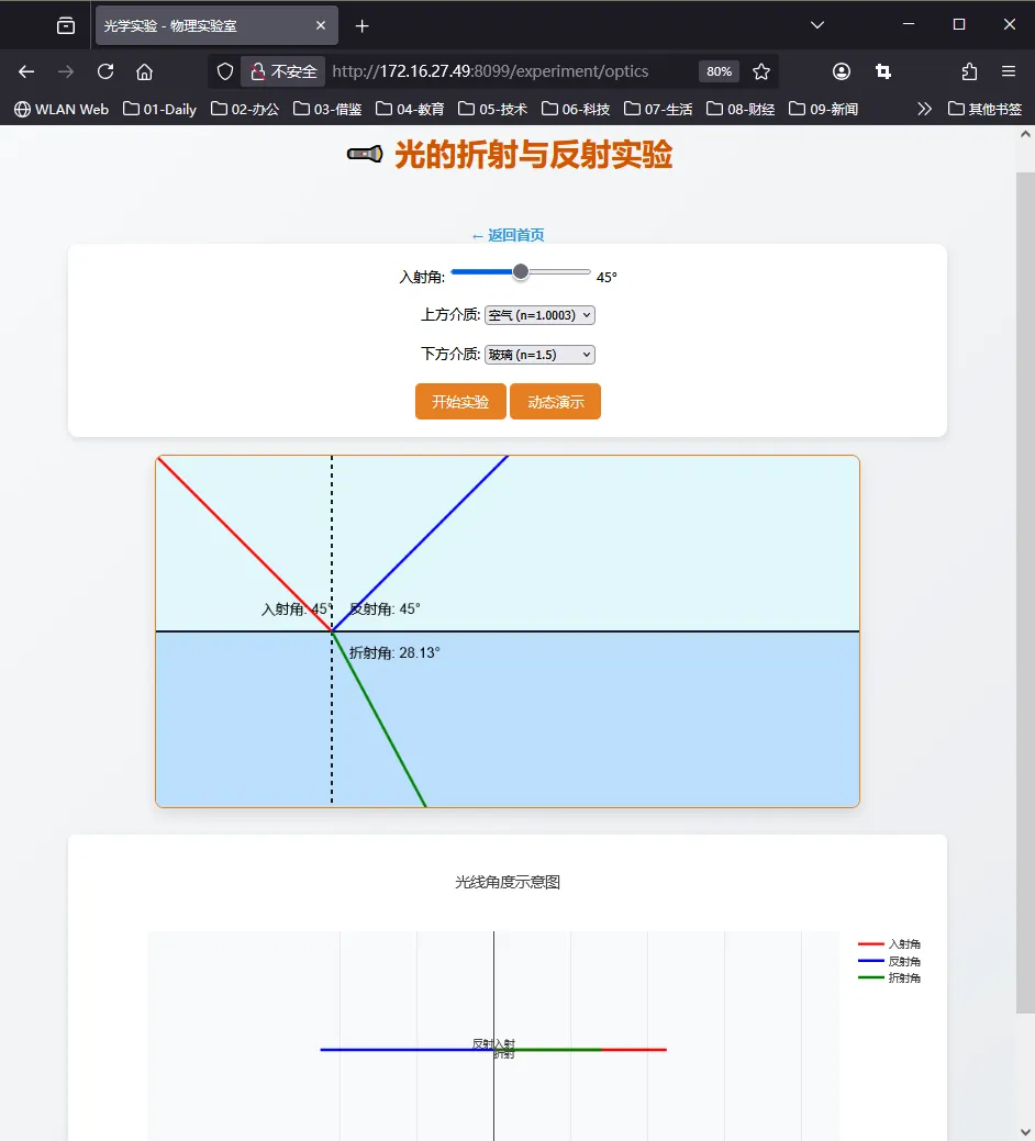 调整“入射角”、“上方介质”和“下方介质”后,开始实验