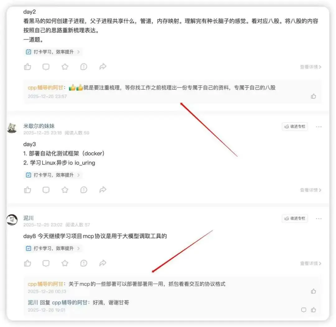(4)活跃的学习氛围,星球打卡不只是一个形式,而是每天观看,针对同学们的学习情况提出合理化的建议,同时也有高质量的星球微信内部群