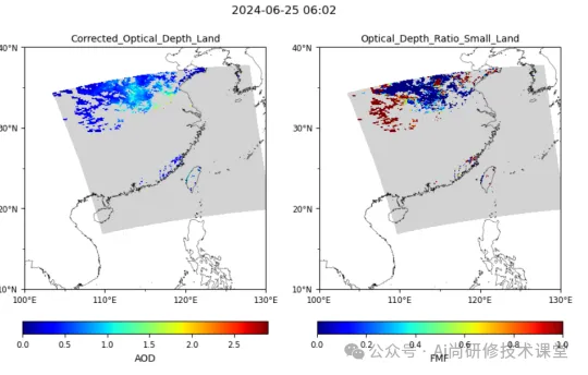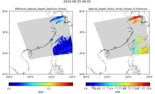 Python作为一种强大且易于学习的编程语言,已广泛应用于数据科学和大气科学领域,Python凭借其强大的数据处理能力,可以高效处理海量的气溶胶数据。例如,通过Pandas库,研究人员可以进行高效的数据清洗、整理和分析;NumPy库则提供了强大的数值计算功能,能够快速进行各种数学和统计运算;Cartopy可以简单直观的方式生成地图;Pyhdf可以快速有效处理卫星的hdf数据。这些工具的结合使用,使得研究人员能够更加专注于科学问题的探索,而不是数据处理的琐碎工作。