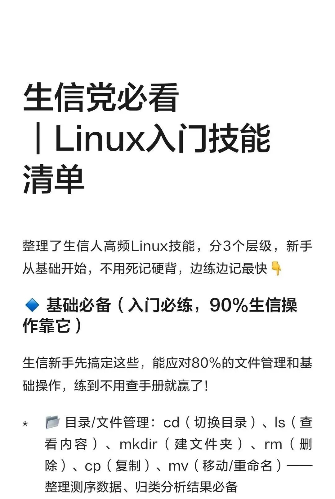 破防了!前两天刷到生信小伙伴的Linux入门清单,什么
